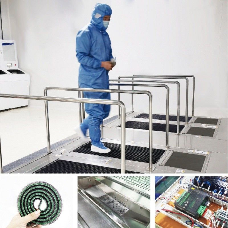 Este sistema inteligente de lavagem de botas, movido a motor, limpa solas de sapatos resistentes e variadas automaticamente em apenas 3 segundos por par, sem levantar os pés. É compacto, higiênico e pode até remover eletricidade estática. Combine com um chuveiro de ar para controle completo de contaminação.